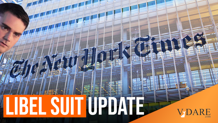 As the New York Times noted in its motion to dismiss VDARE's lawsuit, Conservatism Inc. darling Ben Shapiro has accused VDare of being a "white-supremacist site." He does not explain his reasoning for this claim, but I think it can be inferred from a speech he made last year at Stanford in which he claimed that there is no link between race and political preference, that "voters are malleable," and that anyone who thinks otherwise is "identical to the identity politics left."