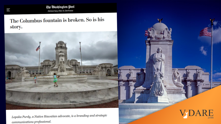 James Fulford's article on Columbus was excellently timed. Yesterday there was an op-ed in the Washington Post stating it was time to demolish the grand statue of Columbus located in front of Washington Union Station in DC.