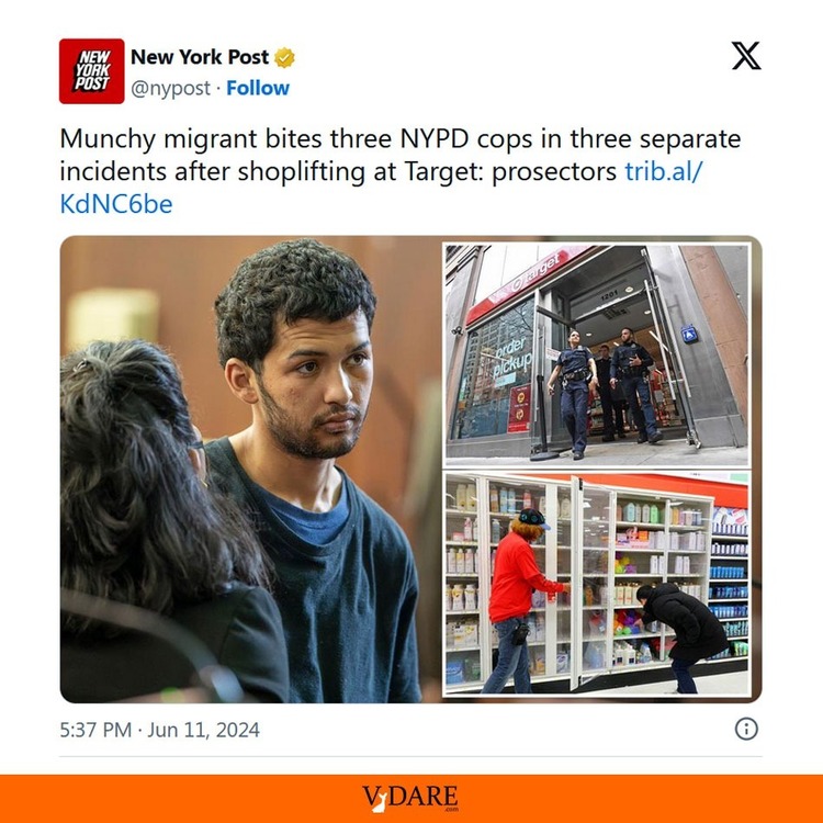 Munchy migrant bites three NYPD cops in three separate incidents after shoplifting at Target: prosectors https://t.co/LIRnMUnV9Q pic.twitter.com/TfZhXikIa0