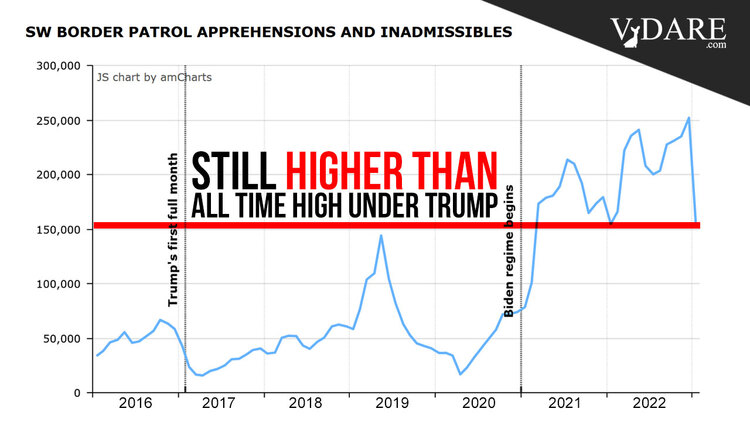 They're wrong. These numbers—for the month of January, traditionally a slow month in illegal border crossings, because Mexicans celebrate Christmas, too—are only low if you compare them to previous Biden Rush months.
