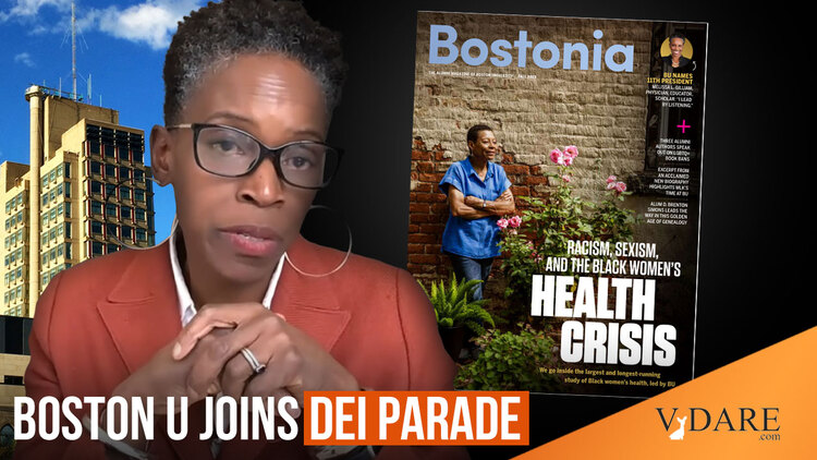 Yet the cover story in the print version of black-obsessed Bostonia is rather more interesting. It’s yet another installment in the communist Mainstream Media’s blacks-are-unhealthy-because-of-racism narrative.