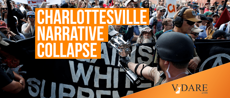 We have a tag called "Charlottesville Narrative Collapse," a special case of what's called Narrative Collapse, in which the media's Narrative of what happened some case like Trayvon Martin's failed assault on George Zimmerman will collapse when presented to, in Zimmerman's case, a jury.