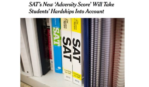 The company announced on Thursday that it will include a new rating, which is widely being referred to as an “adversity score,” of between 1 and 100 on students’ test results. An average score is 50, and higher numbers mean more disadvantage. The score will be calculated using 15 factors, including the relative quality of the student’s high school and the crime rate and poverty level of the student’s neighborhood.