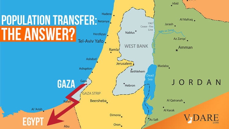 Locke’s classic article, Is Population Transfer the Solution to the Palestinian Problem—And Some Others?, actually discusses forced transfer of Palestinians from Judea and Samaria (”the West Bank”) east across the Jordan River and into Jordan. (Let the Hashemite kingdom take responsibility for their fellow Arabs!) But similar arrangements could surely be made to remove Gaza’s Palestinians from Israel’s border.
