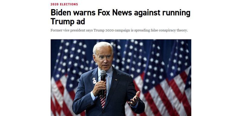 Creepy Joe’s campaign has been busy trying to censor material it doesn’t like. His campaign has, for instance, demanded that news networks not interview Trump’s personal lawyer, Rudy Giuliani, and has tried to pressure Fox to not run anti-Biden ads . Even the decrepit “Gray Lady” had been attacked by Biden’s campaign for publishing an article by investigative reporter Peter Schweizer, who wrote that Congress “could and should conduct an inquiry” into Biden’s Ukraine activities [What Hunter Biden Did Was Legal—And That’s the Problem, by Peter Schweizer, NYT, October 9, 2019].