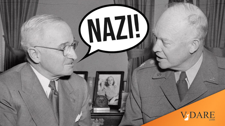 But this smearing has been going on a long time. As Kevin Michael Grace pointed out on Twitter, Harry Truman accused President Eisenhower of ”accepting Nazi racial views” for supporting the GOP backers of the McCarran Act of 1952, which was an attempt to update the Immigration Act of 1924 without creating the floodgate bursting disaster that was to be precipitated by the 1965 Immigration Act: