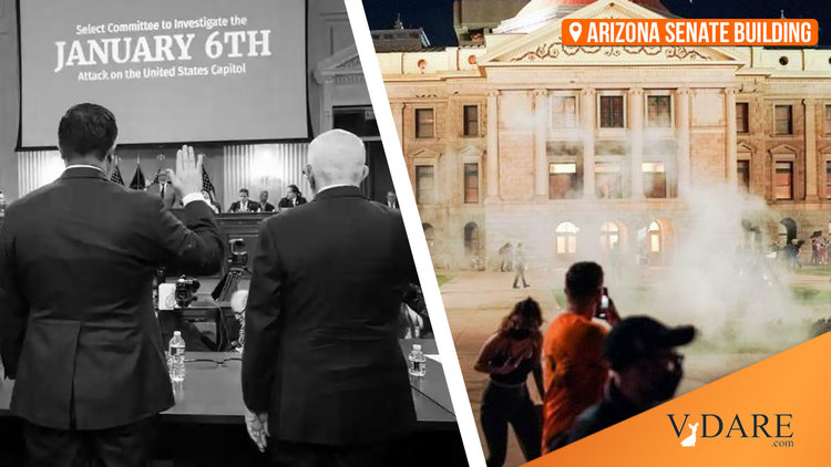 Another way of putting that is that Leftists are rioting—and protests don't just "break out": they're planned and organized in a way that the January 6 Mostly Peaceful Protest specifically wasn't.
