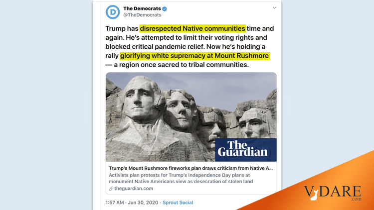 Any American who dares celebrate Mt. Rushmore and the legacy of Washington, Jefferson, Lincoln, and Teddy Roosevelt is a ‘white supremacist.’