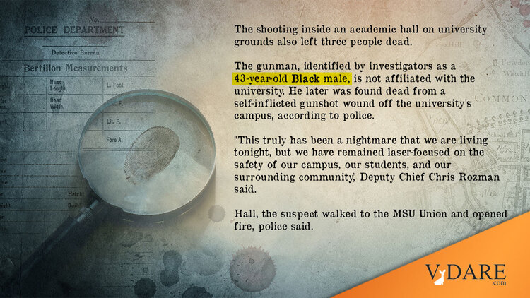 Most failed to notice that Anthony McRae, the 43-year-old male who killed three and wounded five at Michigan State University was black. The media failed to mention it with few exceptions.