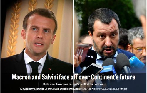 [Macron and Salvini face off over Continent's future, by Ryan Heath, Maia de la Baume, and Jacopo Barigazzi, Politico, July 19, 2018]