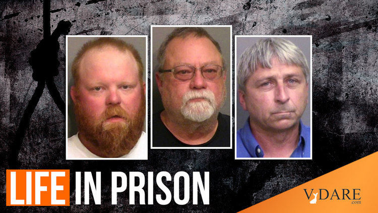 I believe that the defendants of the trials in the Ahmaud Arbery case have been victims of a terrible, anti-white miscarriage of justice. Only dissidents—people such as me and John Derbyshire—seem to understand this. I don’t know of a single “conservative” who has pointed out the judge’s biases, the black-power intimidation of jurors, the constant media slant against the defendants, and the outrageous sentences that were imposed. And there has never been a sympathetic profile of the Bryan or McMichael families that have been torn apart by this travesty.