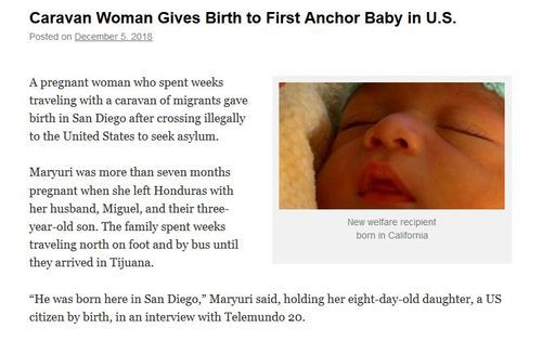 Caravan Woman Gives Birth to First Anchor Baby in U.S., Posted on December 5, 2018