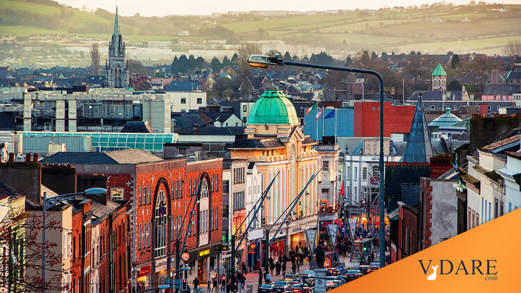 "When I spent three weeks in Ireland in 1994—over a week in Dublin, followed by a clockwise circuit around the country—there were no nonwhites there. I mean I travelled through the whole of the Irish Republic for three weeks and did not see a single nonwhite person, except for one lightskinned black who looked like an American tourist. At an exhibit on the Easter 1916 Rising in the Irish National Museum in Dublin I got into a discussion with two young guards who said that they and other Irish didn't care any more about Irish national history or even Irish nationhood, they wanted to be a part of Europe. I told them that they they were wrong and that they should care about Ireland and want to preserve and protect it. Shortly after my return home, I began seeing news stories from Ireland about immigration there. I put the stories aside and didn't read them. I couldn't stand the thought that Ireland—which up to that point had, like a nation-sized Brigadoon, been untouched by so many of the ills of the modern world including non-Western diversity—was bringing this curse upon itself. "