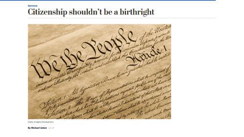 ‘Citizenship shouldn’t be a birthright, by Michael Anton, Jewish World Review, July 19, 2018