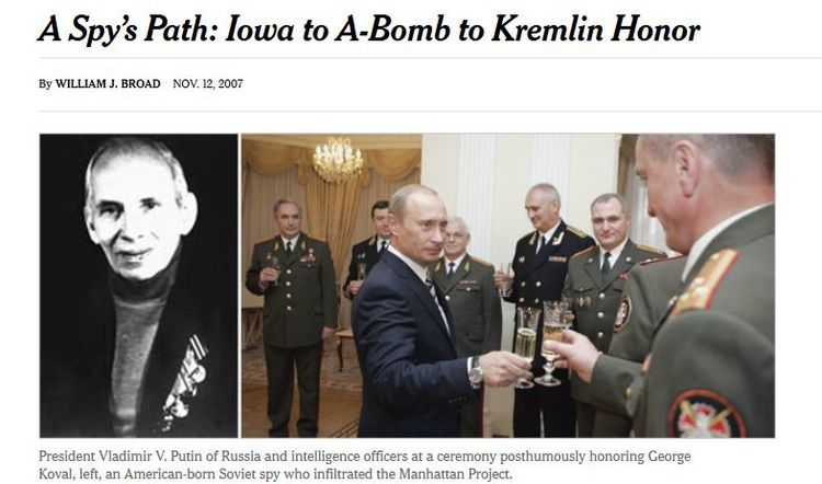 Just this weekend, we poor dumb Americans finally learned for the first time about one of the most important Soviet atomic bomb spies: George Koval, a GRU-trained agent who penetrated the Oak Ridge and Dayton atomic bomb manufacturing plants, then fled back to the Soviet Union in, apparently, 1948.