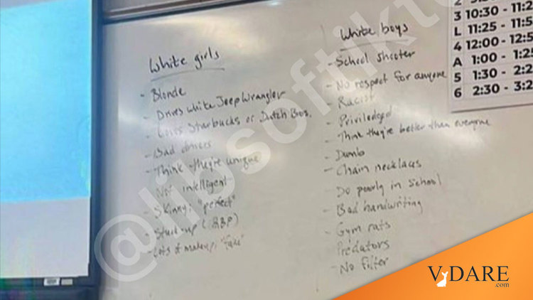 Could you imagine the outrage that would be coming from the entire nation if the words on Gonzales’ whiteboard were used to describe any other group? Why are we tolerating anti-white racism? Tragically, anti-white racism is all too common in our classrooms. Progressive teachers that push their radical ideology, like CRT into our schools need to be fired.