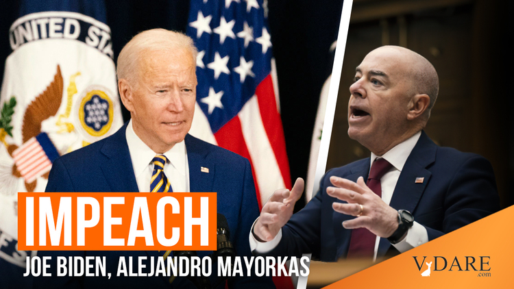 Impeachment of the various usurpers and seditionists of the Biden Regime is both good and necessary. VDare’s James Kirkpatrick lays out the case for that and more in The Banner At Our Feet: How Immigration Patriotism Can Reforge The Right. Impeachment is a slap at the Regime and will isolate and polarize the people from the Biden Regime’s efforts to end the Historic American Nation through illegal immigration, some overt like the open borders with Mexico, Canada, and the open coast lines where the overwhelming majority of illegal aliens who enter are released after arrest, some a return of the infamous Obama Regime Administrative Amnesty policies in response to illegal immigration in general and the 2014 Zerg Rush, including the use of catch-and-release.