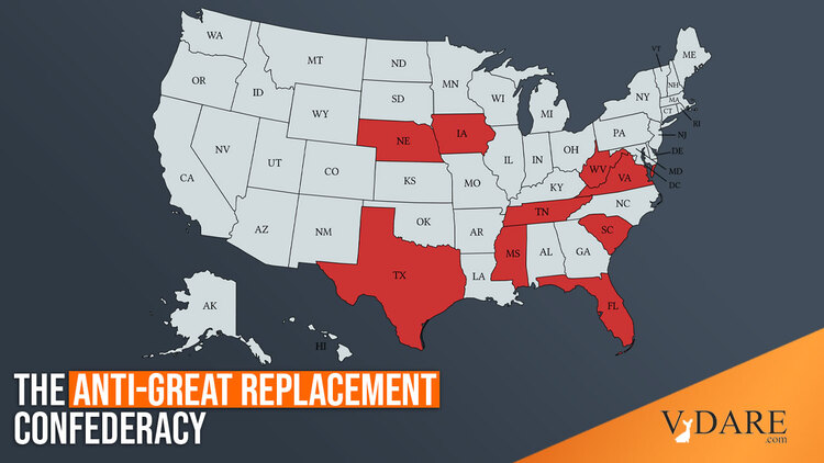 Three more red-state governors have deployed National Guardsmen or lawmen to help Texas stop the illegal-alien invasion of the United States. Virginia, West Virginia, and South Carolina bring to eight the number of states in the anti–Great Replacement Confederacy.