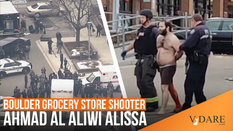 But of course, even if he is genuinely "of" Arvada, in the sense of being born there, the fact that a man named Ahmad Al Aliwi Alissa is killing people in Boulder, Colorado is a result of Muslim mass immigration, mostly legal immigration, a result of the Immigration Act of 1965. When Omar Mateen murdered 49 people in Florida, he turned out to be an Afghan Muslim, and born in America.