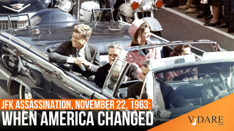 Of course, one racial gap was crucial to the story of the 60s. The assassination of the domestically cautious JFK put the ambitious LBJ into power with a mandate to push through civil rights and welfare programs to punish the right-wing racists who had murdered Kennedy. Chief Justice Earl Warren expressed the hopes and dreams of the Establishment when he declaimed on 11/22/63, “A great and good President has suffered martyrdom as a result of the hatred and bitterness that has [sic] been injected into the life of our nation by bigots….”
