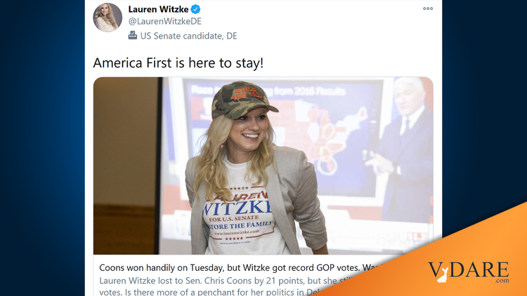 Immigration patriot Lauren Witzke succeeded, in spite of opposition from the GOP establishment, in getting the Republican nomination for Senator in the state of Delaware, formerly represented by Democratic presidential candidate Joe Biden, but failed to defeat Democrat Chris Coons.