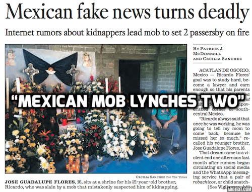 When fake news kills: Lynchings in Mexico are linked to viral child-kidnap rumors, Los Angeles Times, September 21, 2018