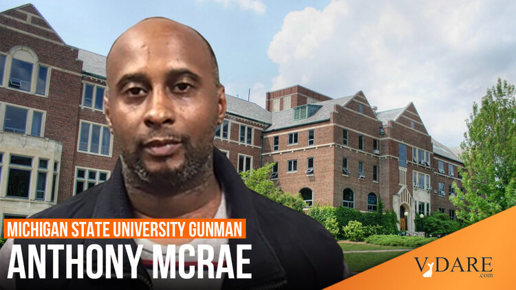 A black gunman did a mass shooting at Michigan State University, killing three, wounding five. Below, from a previous incident, a Michigan Department of Corrections booking photo of Anthony McRae.