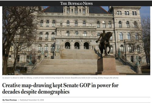 As Republicans fretted last week over the string of Election Day losses that flipped the state Senate to Democratic Party control, they might seek solace in a not-so-small dose of reality. The Republicans should have lost the Senate at least 10 years ago and, in fact, probably a lot longer ago than that were it not for the state's arcane way of determining how legislative seats are drawn. [Creative map-drawing kept Senate GOP in power for decades despite demographics, By Tom Precious, The Buffalo News, November 12, 201]