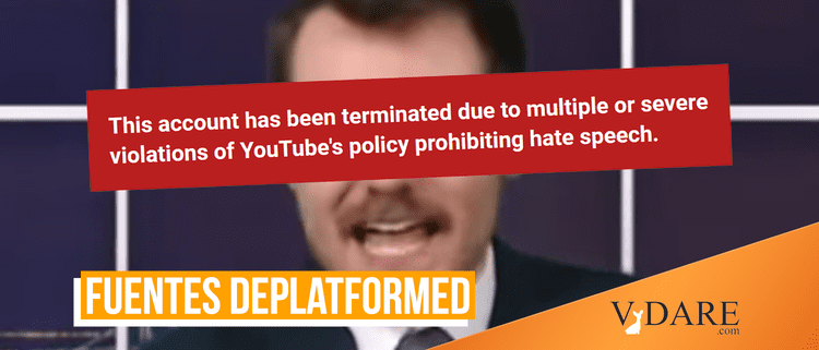 Fuentes's message of “America First” resonated with hundreds of thousands of people, and he was working with other young people to try and build a movement to challenge Conservatism Inc. (See The Groyper Wars On Immigration Are The Debate That American Nationalism Needs.) Having his popular YouTube channel deleted by Google will be a momentary nuisance, but in the long-term will only work to motivate those around him of the worthiness of their cause.