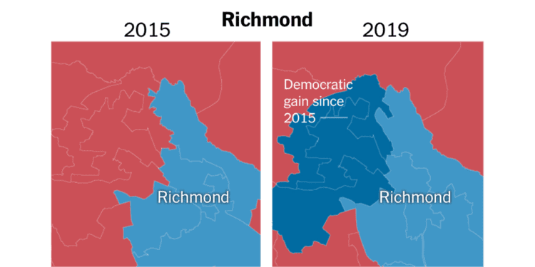 [How Voters Turned Virginia From Deep Red to Solid Blue, by Sabrina Tavernise and Robert Gebeloff, New York Times, November 9, 2019]