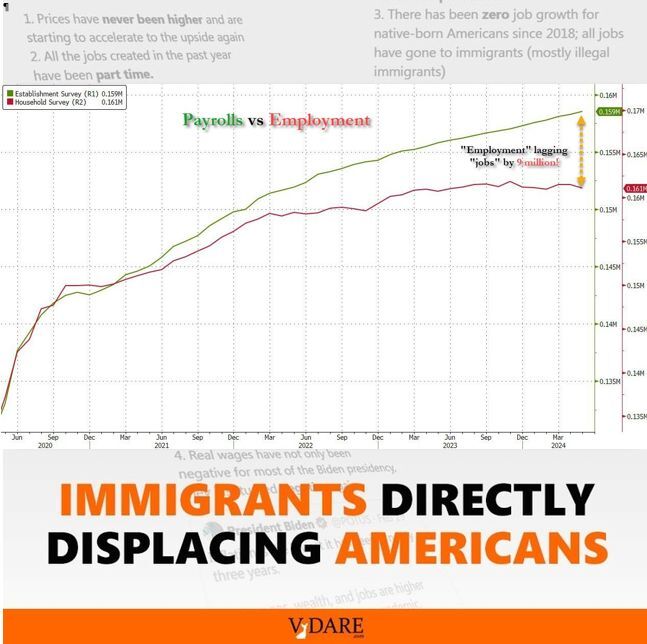 As I said in ZeroHedge: Feb Saw Record Immigrant Job Scarfing. No Job Growth For Americans Since 2018