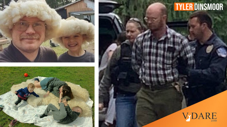 My friend Tyler Dinsmoor is a true man of God; in fact, he often takes his beautiful wife and his adorable children door-to-door in their godless Washington State to spread the Gospel. Dinsmoor is a Navy veteran and supports his family with a high-quality sheepskin business. He has a son, a daughter, and a third baby on the way.