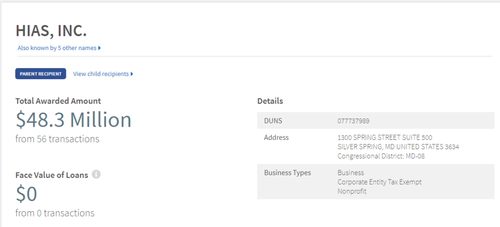 The Hebrew Immigrant Aid Society did NOT take a beating under Trump as you can see from data at USA Spending!