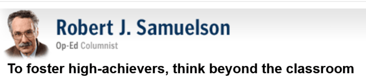Robert Samuelson's op-ed in today's Washington Post [To foster high-achievers, think beyond the classroom]is disappointing (knowing what he knows as someone who provided Bob with regular research assistance in Newsweek's Washington Bureau Library and given that his mentor at Harvard was Edward Banfield), especially near the end where he attributes these "persistent achievement gaps" to factors "outside the classroom": broken homes, street violence, and indifference to education. This is comparable to a physician diagnosing coughing as a cause of emphysema. For the euphemistically challenged, "street violence" is often cited as a category of distinction as if asphalt supposedly takes on a violent life of its own. Samuelson cites Jerome Kagan noting that "a strong predictor of children's school success is the educational attainment of their parents".