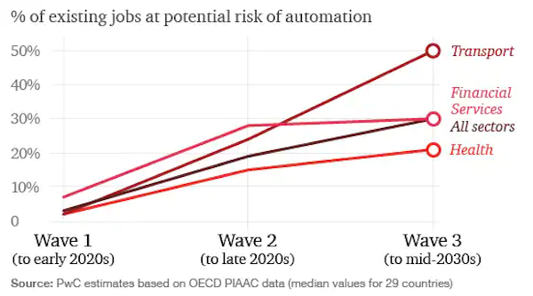 NARRATOR: High-skilled jobs such as finance managers, payroll managers and accounting roles face a 56 percent chance of being automated in the future. And according to Consulting.ca, up to 30 percent of oil and gas jobs could be lost to automation by 2040. One major problem in the US for workers is that workers are a tax burden for employers, whereas machines are actually subsidized.