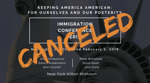 I’m sorry to announce that the VDARE.com Immigration Conference Series scheduled for November 24, 2018 and Feb 2, 2019, at the New York Hilton Midtown, has been canceled.