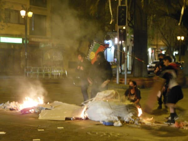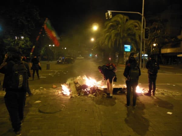 Now, when leftists run riot in the streets, they fly the Mapuche flag. Here are some antifa setting up a street barricade in late 2019: