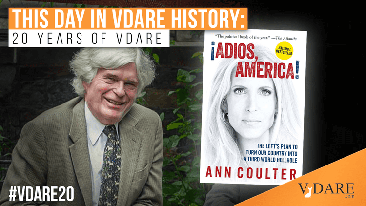 Ann Coulter: Peter Brimelow’s front page article in National Review. [But] then I never wrote about it. I was practicing law then, and you know you live in a bubble in college and law school. I suppose I believed all the Jack Kemp nonsense. I read that cover story in National Review and realized I’d been had. I’ve been lied to. Oh my gosh! It was the only time I remember completely changing my mind about something. Of course there wasn’t that much to change because immigration wasn’t something I had ever thought about. I was like a lot of Americans to this day, you just go along: We’re a nation of immigrants, immigration is a wonderful thing, aren’t they hard workers, blah, blah, blah. And since I become a writer, Peter has been haranguing me, demanding to know why I haven’t written about immigration. I kept telling him, because you said it all. I’ve nothing new to say. So I am pleased that with this book—you have to get to chapter 7 and you start hitting things that, I think, surprised even Peter. He wanted me to start the book at chapter 7: Just skip everything before, everybody knows that first stuff, Ann. But I had to stay: If only everybody did know that stuff.