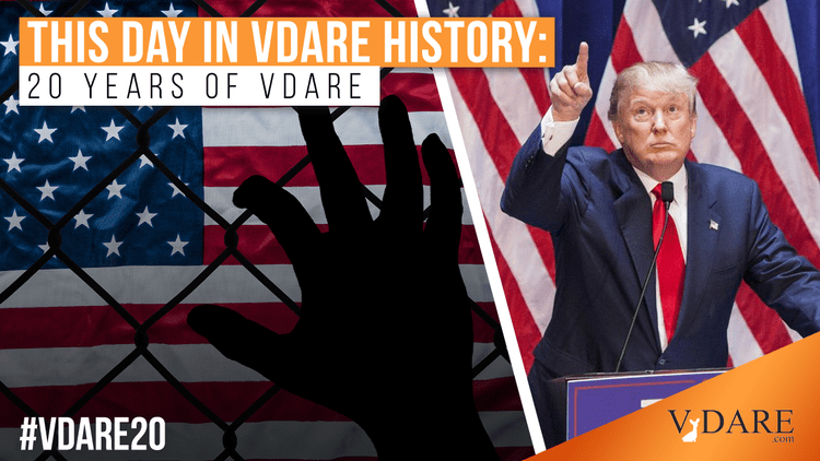 This fateful post was published here on VDARE.com on this day in 2015. See also, two months earlier, For Better Or Worse, Donald Trump May Be The Only Immigration Patriot Running For President.