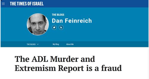 Dan Feinreich, a blogger at the Times of Israel, has tossed and gored the latest ADL Report on "domestic extremism".