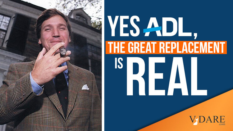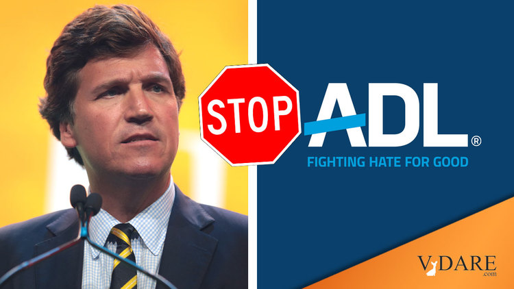 "Tucker’s bravest moment of the segment was challenging the Anti-Defamation League. The ADL called for his firing for criticizing demographic replacement. The Fox News host read on air an ADL post that criticized demographic replacement… in Israel."