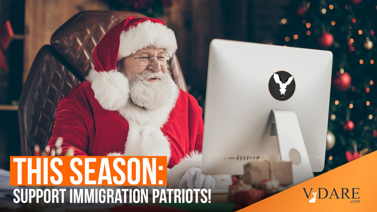 In this season of giving, I urge you to choose VDARE.com for your charitable donations. Every dollar goes to support our mission—educating the public on the negative effects of mass immigration and national identity. We inform the fight to keep America American. Be our Santa this year!