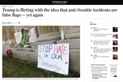 Use of the term "false flag" by the MSM is an attempt to tie Trump to really weird conspiracy theories, but the older espionage version of the term is equivalent to what we call a Hate Hoax—faking a racist attack or threat and blaming it on whites. That's what happened to Jewish Community Centers in 2017.