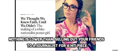 One such person is Anna Silman. She decided to pen a lazily-written smear of Faith Goldy entitled “We thought we knew Faith, until we didn’t,” and called her a “white nationalist poster girl.” [The Cut, November 9, 2018]. There are the attacks on her appearance that would be called offensive if directed against liberal women and the shrill denunciation of her “hate-based fame.”
