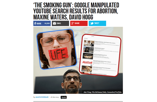 [‘The Smoking Gun’: Google manipulated YouTube Search results for abortion, Maxine Waters, David Hogg, by Allum Bokhari, January 16, 2019]
